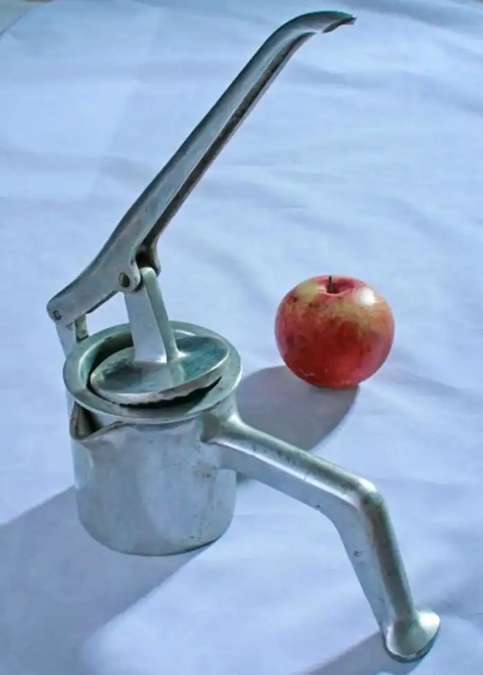 О функциях этого устройства тоже несложно догадаться: емкость с гигантским ситом – примитивная соковыжималка. Впрочем, для овощей этот гаджет тоже отлично подходит. Не требует электричества, легко перевозится/переносится, служит вечно.