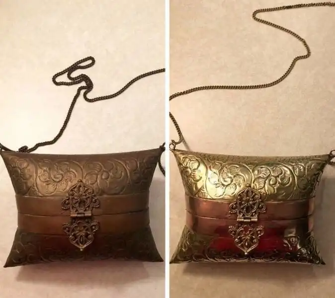 26. "До и после очистки и полировки старой маминой сумочки 80-х годов"