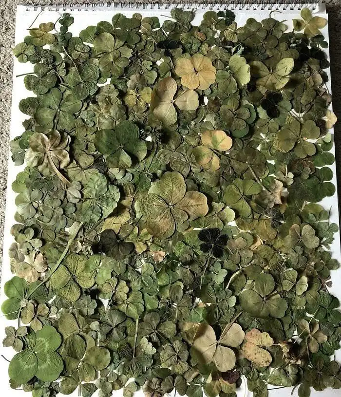7. "Моя коллекция из более чем 200 четырехлистных клеверов"