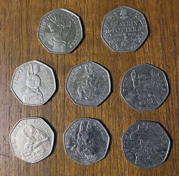 14. "Медленно собираю монеты 50 пенсов из коллекции Беатрис Поттер. Сегодня вечером нашел монетку с Флопси"