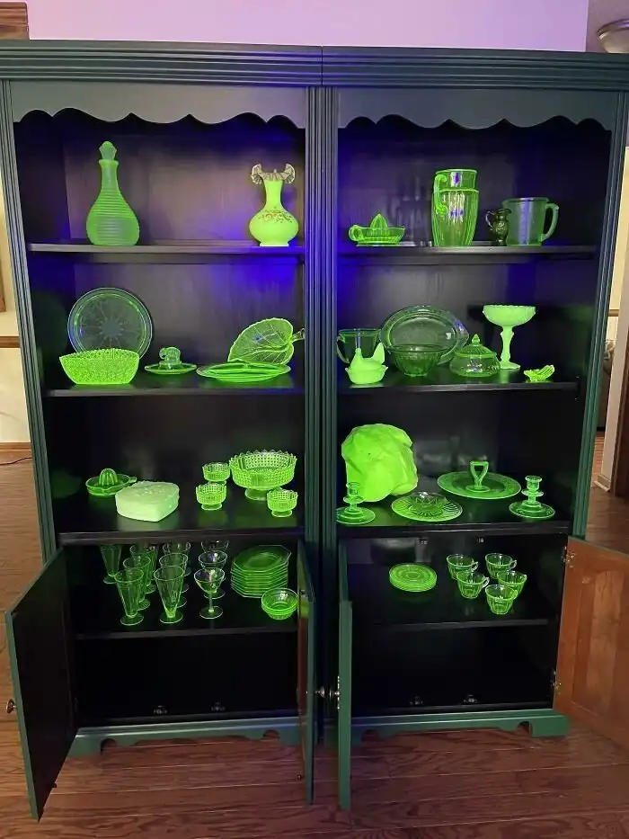 15. "Моя коллекция уранового стекла, которое светится в ультрафиолете"