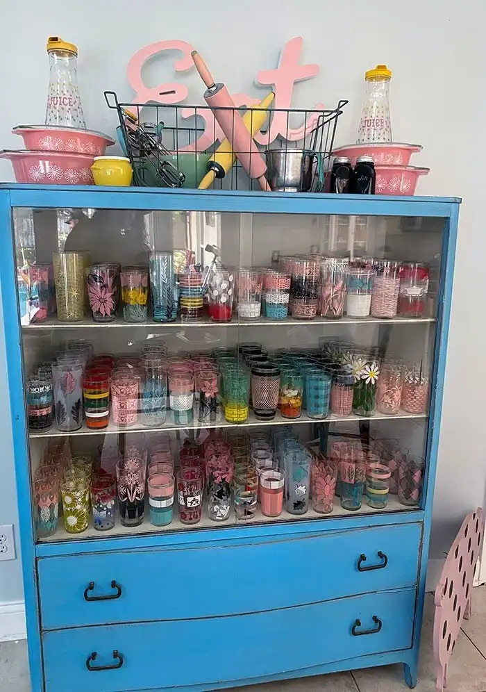 28. "Я собираю старые стаканы и на прошлой неделе наткнулась на этот красивый шкаф в Армии Спасения. Идеально"