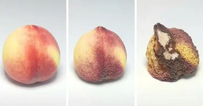 Персик во время первого, девятого и двадцатого дня эксперимента