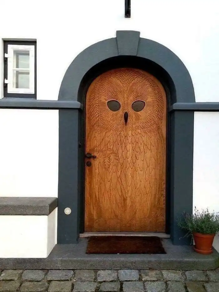 Деревянная дверь в виде совы в Копенгагене была создана в 1930 году.