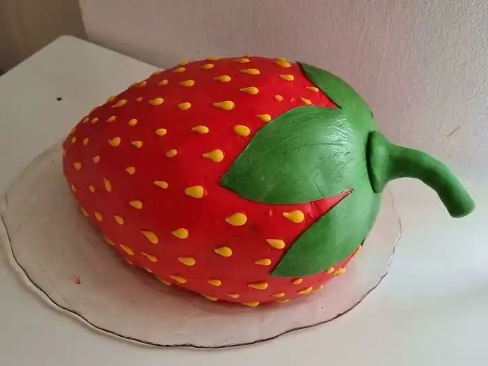 2. "Дочка хотела на день рождения розовый торт с клубникой. Начинка - заварной крем и клубничный джем"
