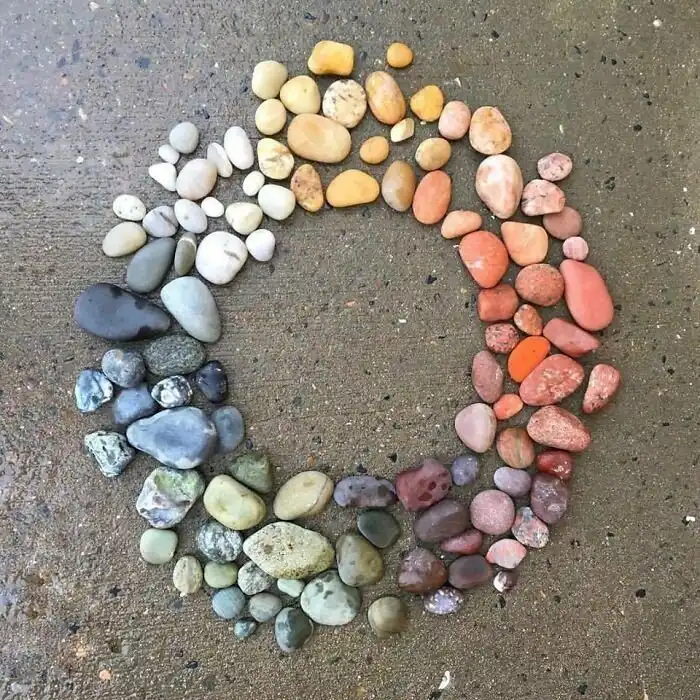 15. "Подруга сложила радугу из найденных на пляже камней"