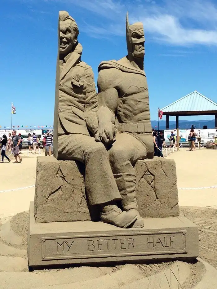 21. "Невероятная скульптура Бэтмена с Джокером из песка в Парксвилле, Британская Колумбия"