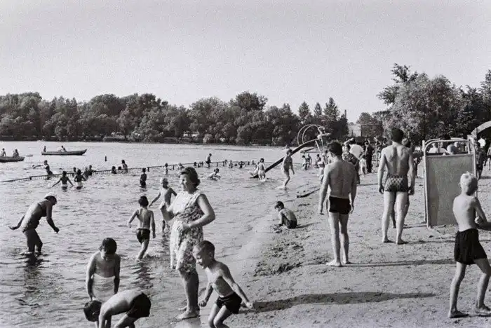 7. Детский пляж в Колпино, 1969 – 1970 гг. СССР. Ленинград. Фотограф Борис Фертов.