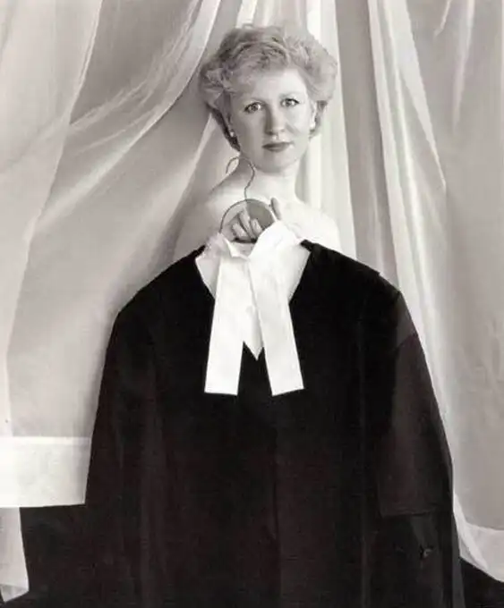 20. В 1990 году министр юстиции Канады Ким Кэмпбелл снялась с голыми плечами, держа перед собой мантию.