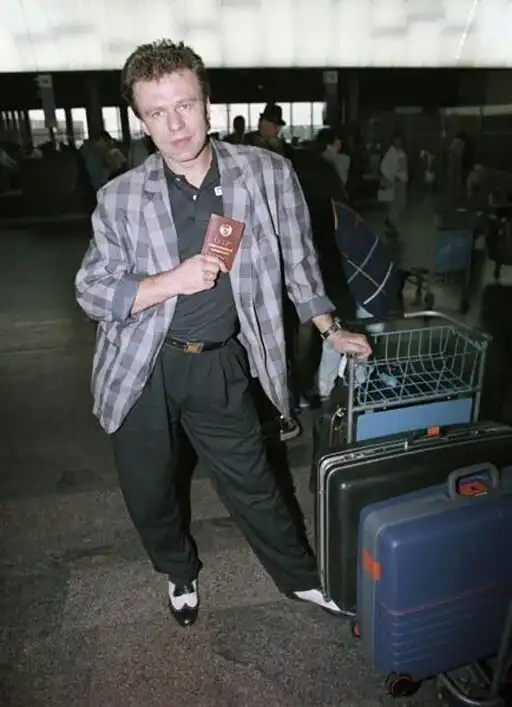 21. Капитан сборной СССР Вячеслав Фетисов направляется играть в НХЛ за команду "Нью-Джерси Девилс", Шереметьево 1989 год