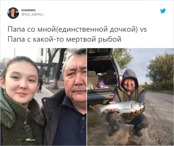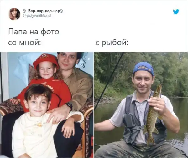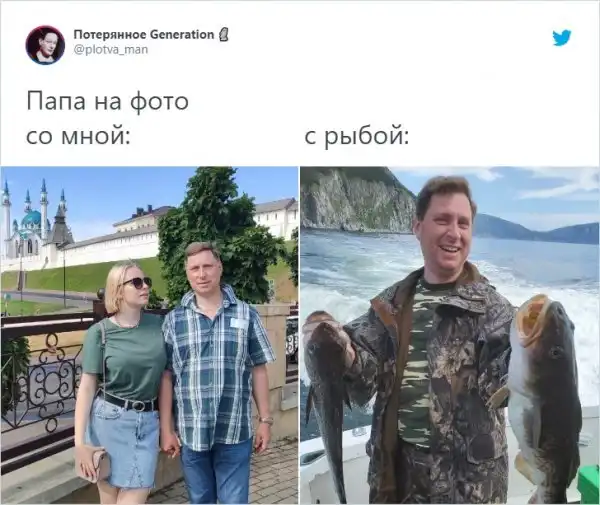 Суровые мужчины рядом с детьми и счастливые рядом с уловом