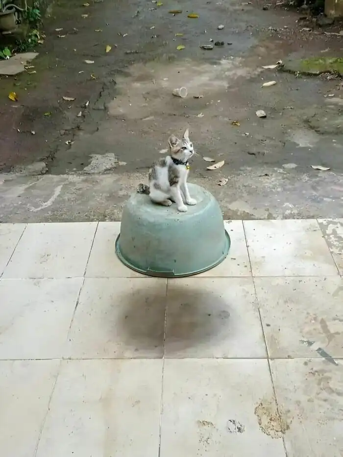 Гигантская кошка на самом деле нормального размера - просто она сидит на столе, а не на ковре