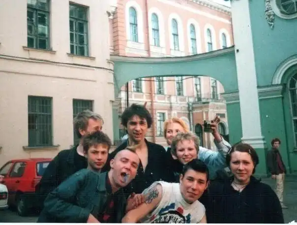 Основатель группы «Король и Шут» Михаил «Горшок» Горшенёв с фанатами, 1999 год.