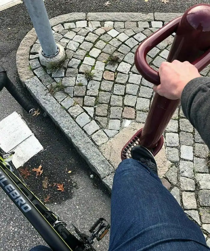 Для велосипедистов в городах есть поручни у светофора, чтобы не спускаться на землю
