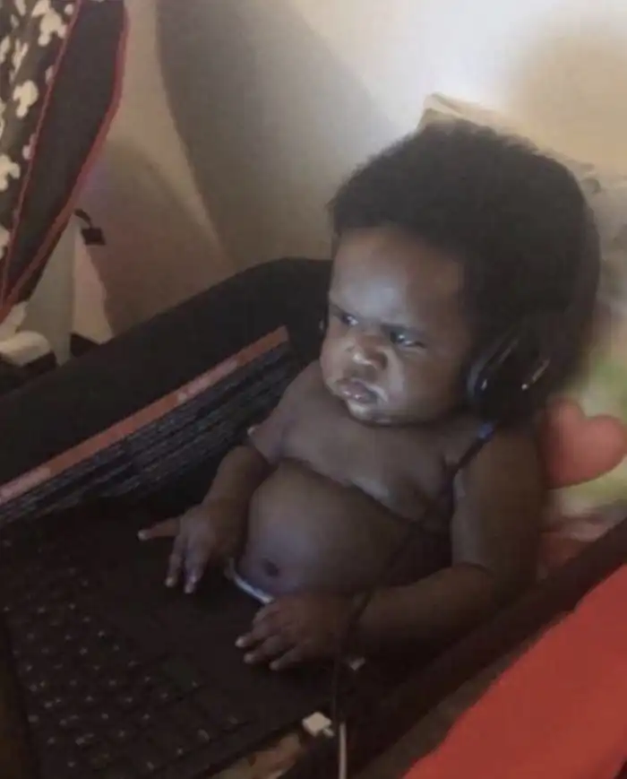 Малыш похож на мужчину средних лет, который нажил себе пивное пузико
