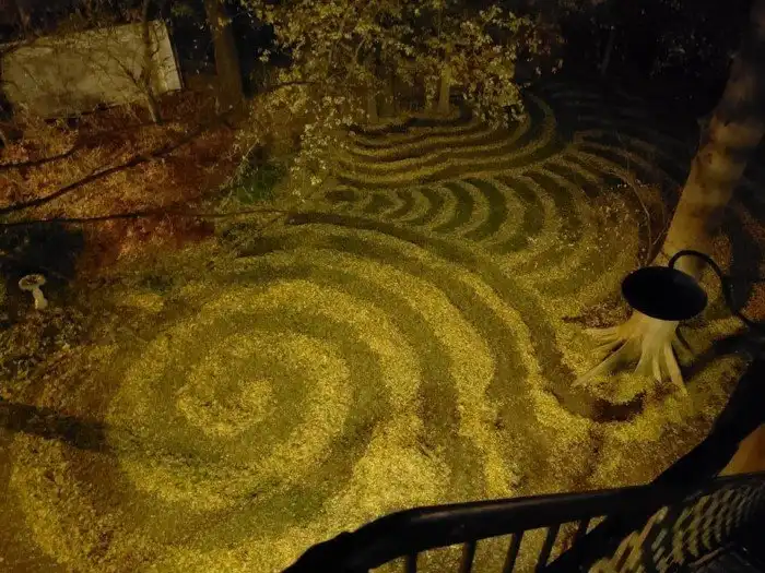 Нет, просто снова креативный сосед попался, который сгрёб листья очень необычным способом.