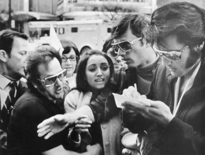 Луиза Чиконне (будущая певица Мадонна) пытается взять автограф у Элвиса Пресли в 1970 году