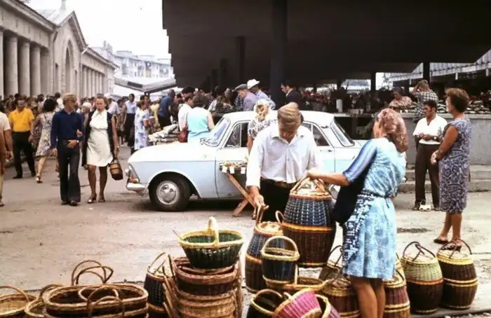 34. Продажа знаменитых плетёных корзин в городе Сочи. СССР 1974 г. Фото Манфреда Шаммера.