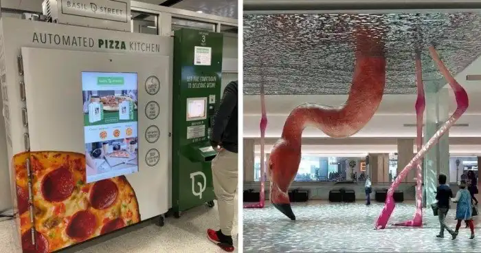 Автомат, где можно приготовить себе пиццу за 3 минуты, в аэропорту Сан-Антонио.