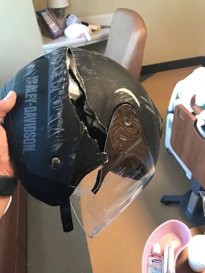 "Два года назад этот шлем с сертификатом Dot выдержал удар на скорости 75 километров в час и спас мне жизнь"