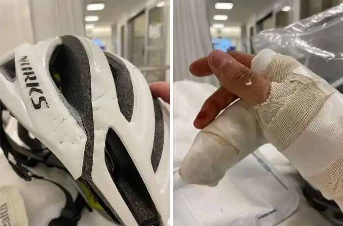 "Попал в аварию. Шлем всмятку, а голова цела. Только два пальца сломал"
