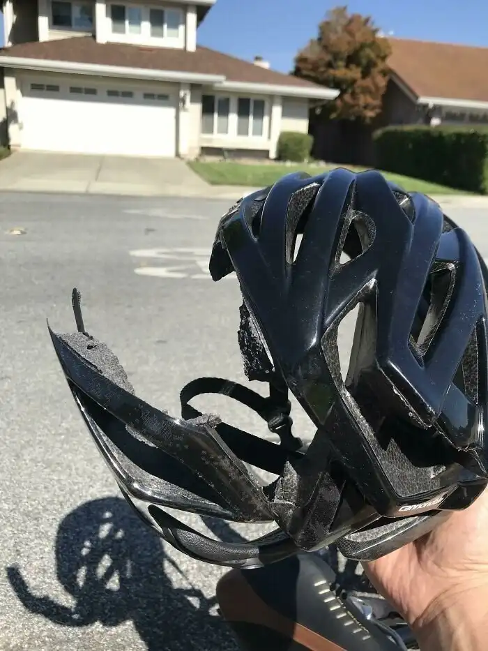 В этом шлеме велосипедист прибыл в отделение неотложной помощи — на удивление, невредимым. А представьте себе его голову, если бы он был без шлема