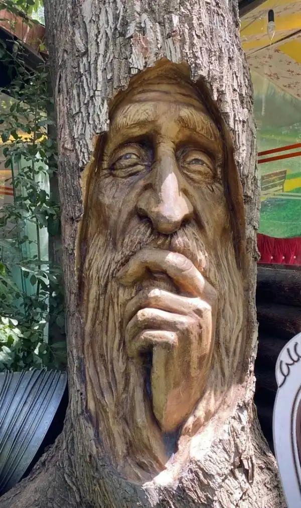 Лицо, вырезанное на дереве в Хамадане (Иран)