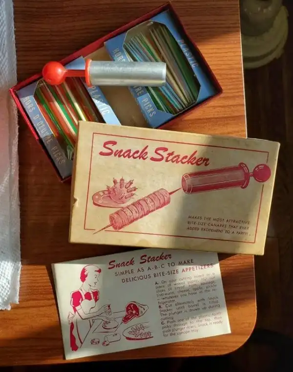 Кладёте на стол всё, что вашей душей угодно, мясо, колбасу, хлеб, фрукты и так далее. А потом накалываете всё это с помощью этой чудо-штуки и получаете канапе с ровными кружочками.