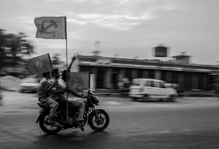 Рабочие коммунистической партии на митинге незадолго до поражения на выборах штата в Западной Бенгалии, Индия.