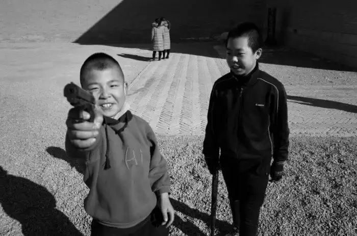 Крепость Цзяюгуань в провинции Ганьсу, Китай. Мальчишки играли друг с другом, но потом увидели фотографа.