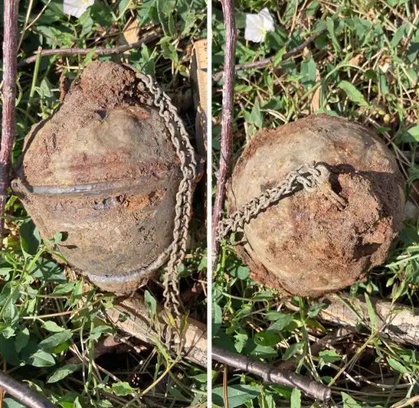 Этот предмет из металла нашли при рытье траншеи, он весит почти 3 кг