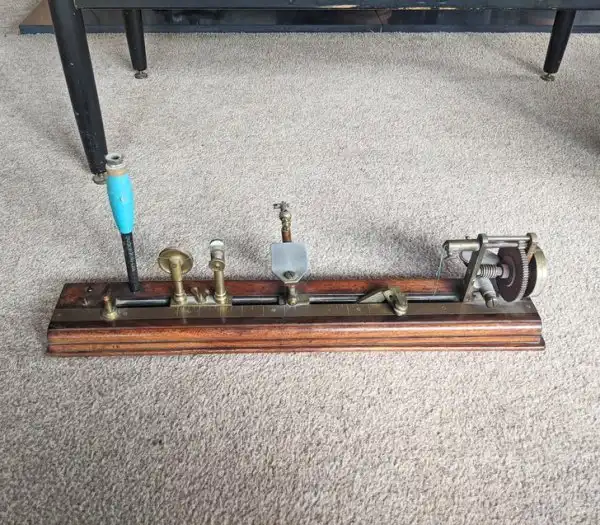 Это устройство для испытания пряжи на прочность и на растяжение, произведено примерно в 1890 году.