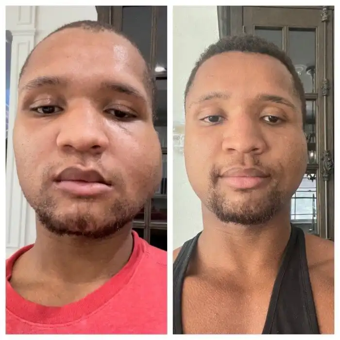 После процедуры мужчина выглядит совсем другим человеком. Брутальность ему к лицу.
