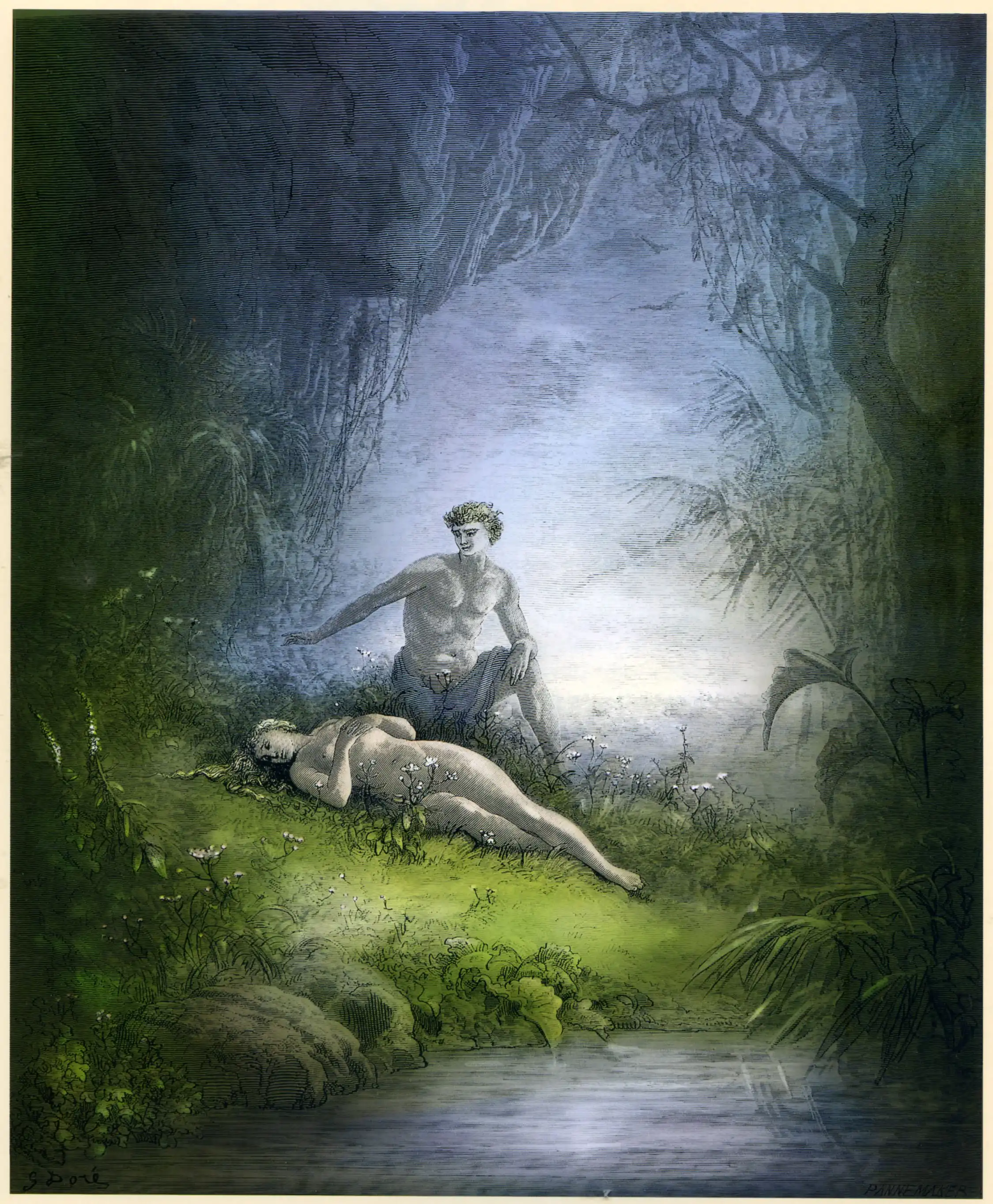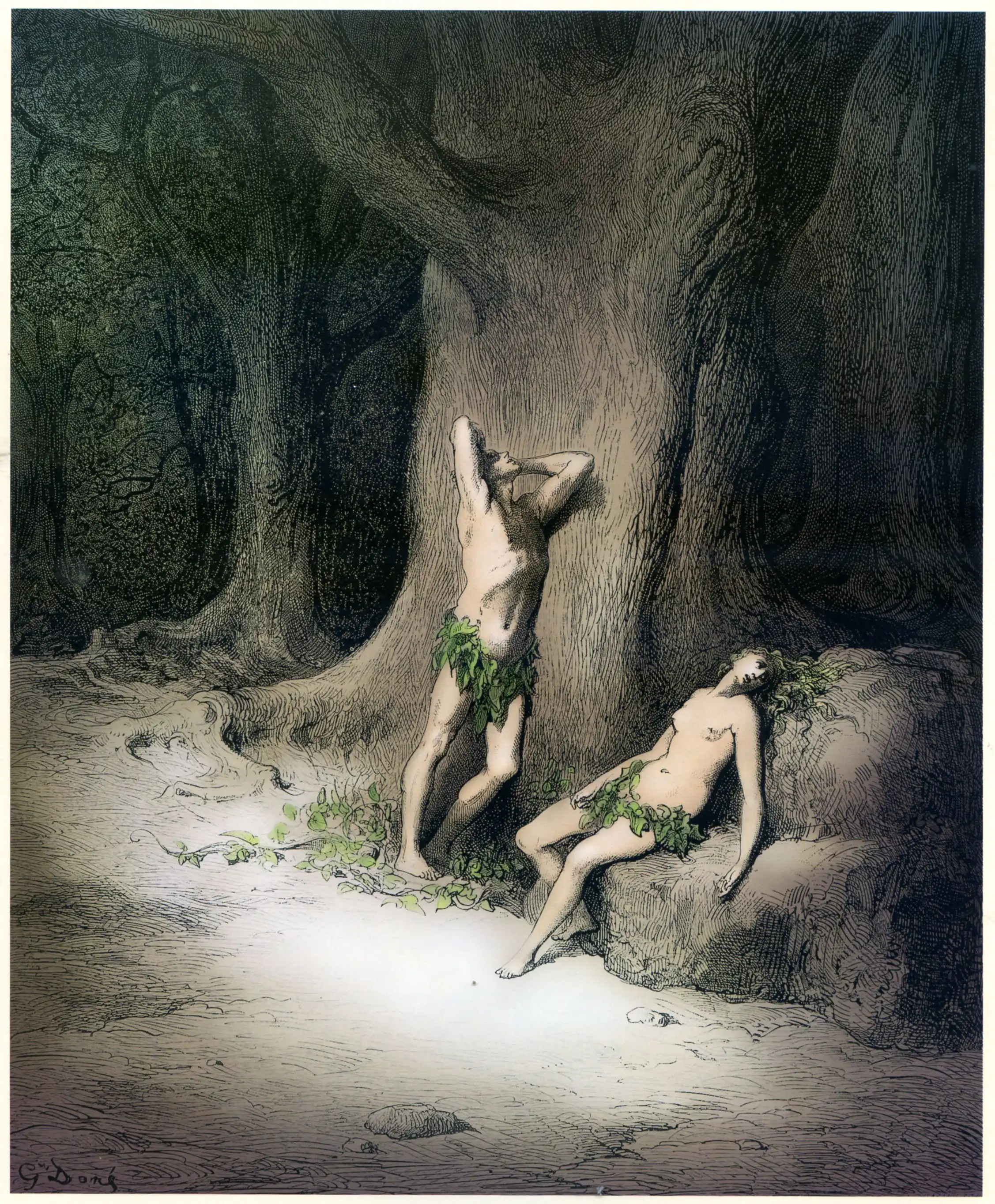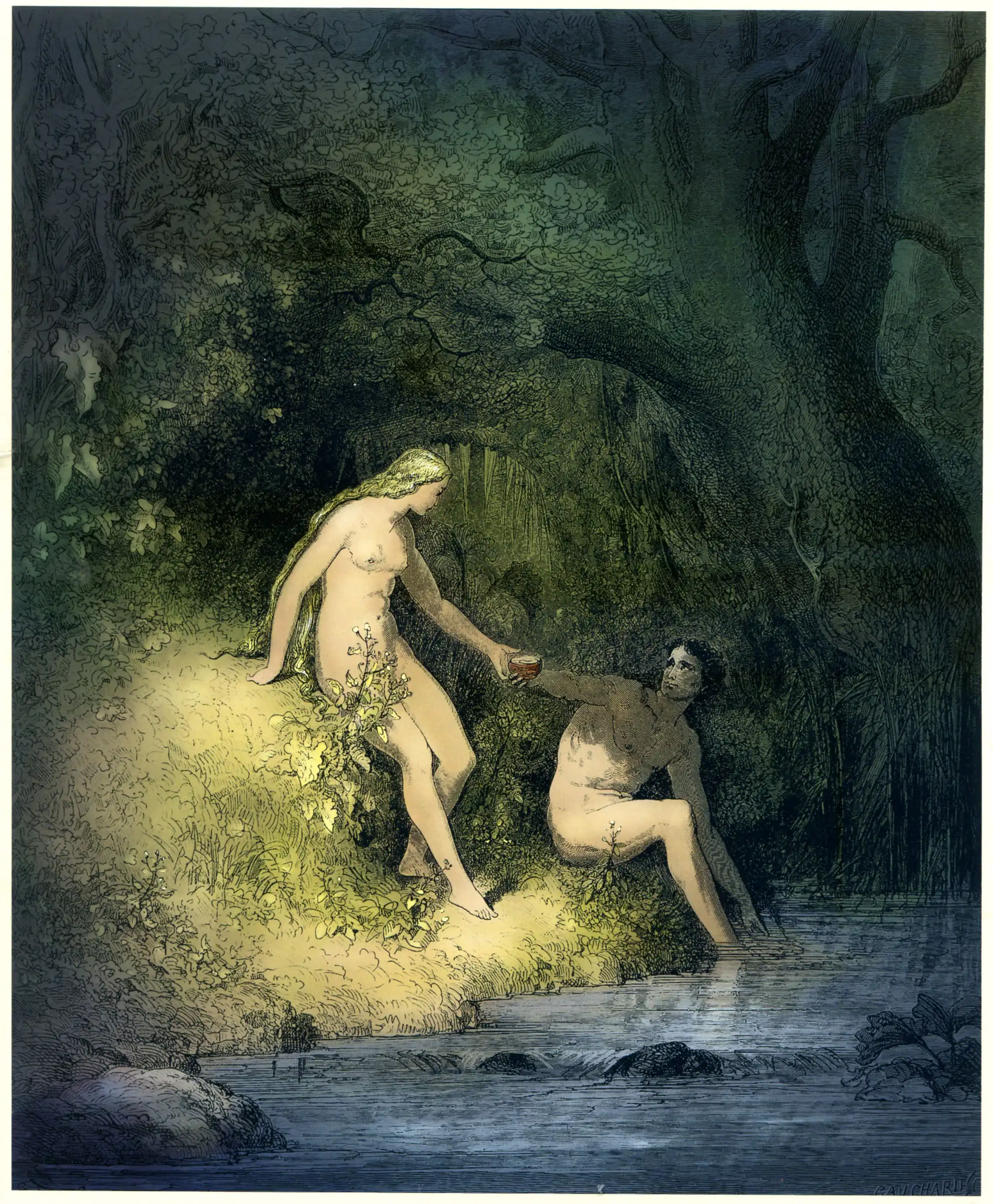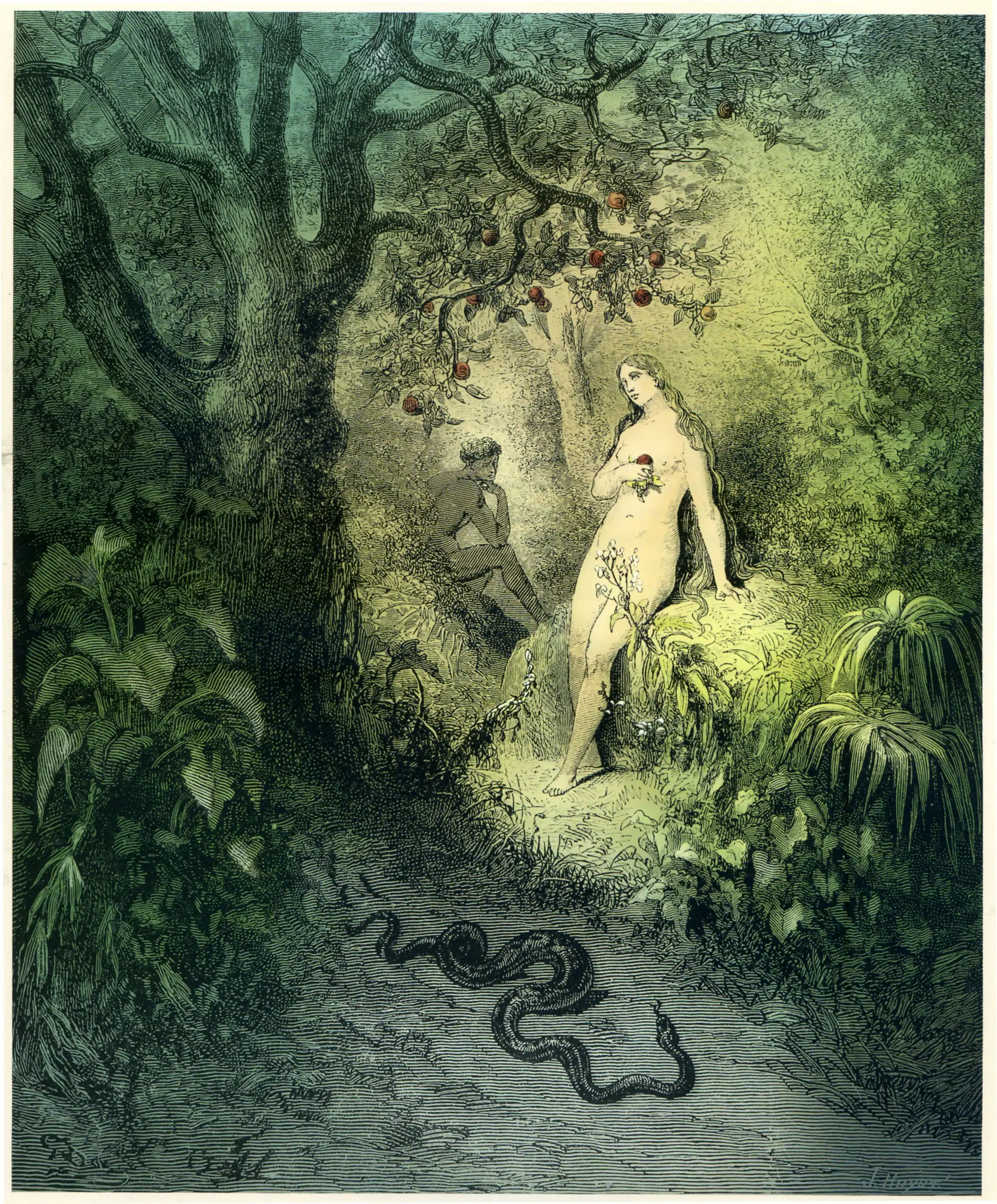 Адам с любовью склонился над своей женой, восторженно любуясь её красотой