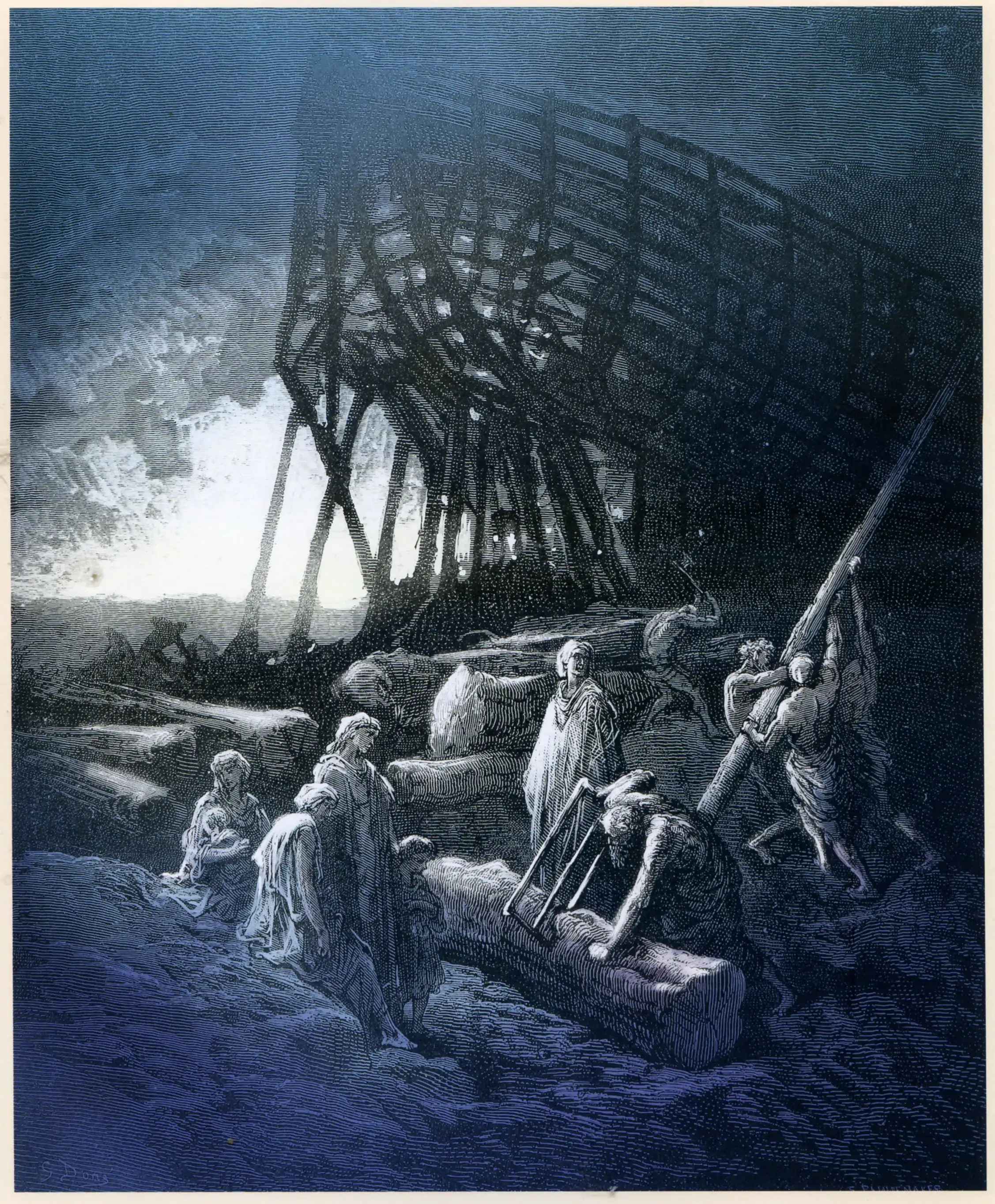 Срубив на горе высокие дерева, они начали строить громадный корабль