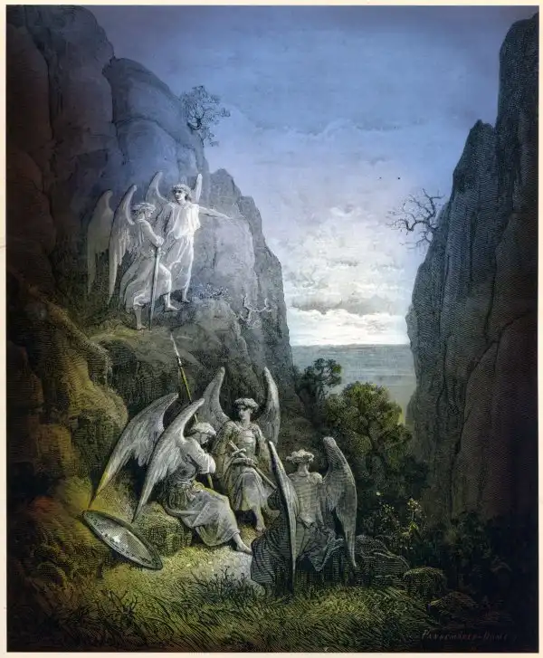 Михаил со своими победоносными Ангелами расположился станом на поле битвы и поставил кругом стражу из пламенных Херувимов