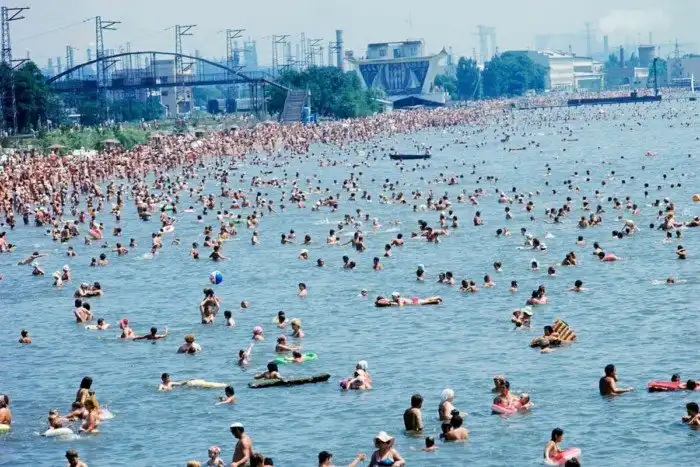 13. Городской пляж вблизи завода — Азовсталь, на побережье Азовского моря. Жданов (Мариуполь), УССР, 1978 год