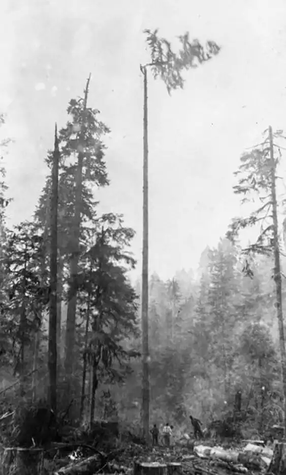 29. Лесоруб срезает верхушку дерева, Британская Колумбия, 1920-е