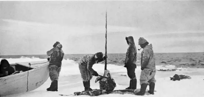 30. Гренландские эскимосы разделывают добытого нарвала. Начало XX в