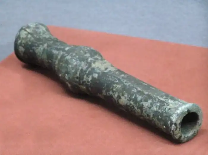 Начнём с самого старого из всех орудий, Хэйлунцзянской ручной пушки. Как следует из названия, это оружие представляло собой пушку, которую нужно было держать в руке. Созданная неизвестным оружейником в Китае в 1288 году, в Банлачэнцзы, провинция Хэйлунцзянь, эта ручная пушка является дедушкой (или бабушкой) всего огнестрельного оружия.