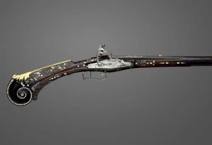Винтовка короля Людовика XIII с кремневым замком знаменует собой поворотный момент в производстве оружия, поскольку в этой винтовке использовался кремневый механизм. Винтовки с кремневым замком были первоначально произведены в начале 17 века во Франции, и это ружье, в частности, было сконструировано в 1620 году Пьером Ле Буржуа и Марином Ле Буржуа.