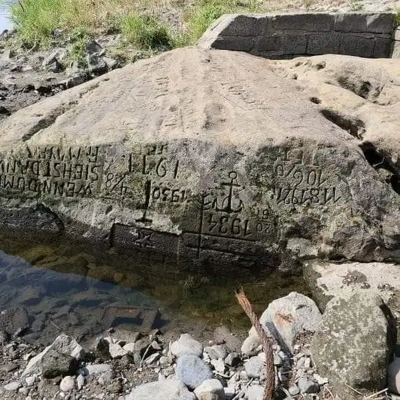 7. Недавние засухи в Европе снова обнажили «Голодные камни» в некоторых реках Чехии и Германии. Эти камни использовались, чтобы отметить низкий уровень рек, что предвещало голод. Этот находится на реке Эльбе, и надпись 1616 года гласит: «Если видишь меня, плачь».