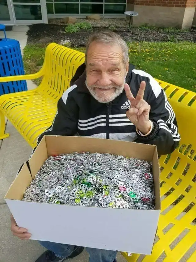 Этот человек на фото собрал уже более 13 миллионов ключей-колец от жестяных банок!