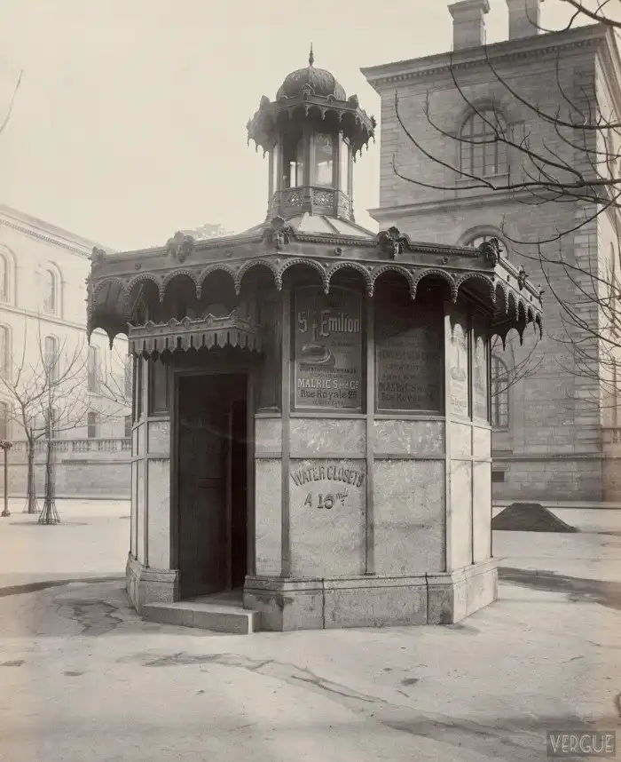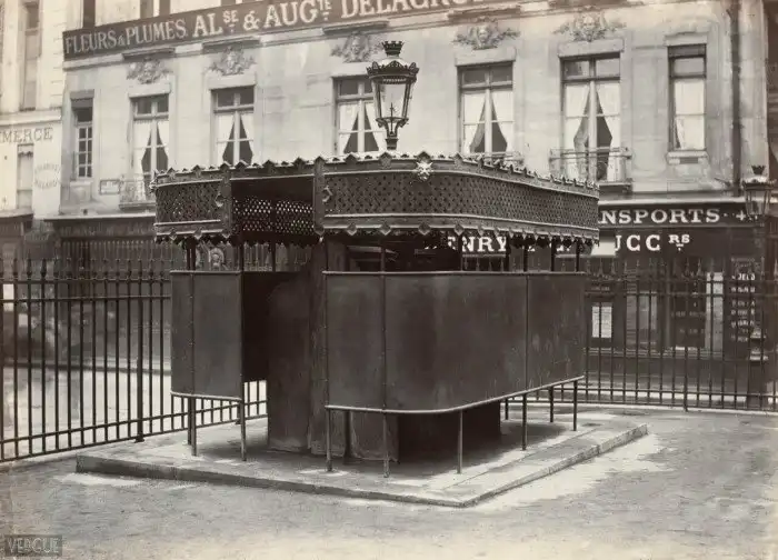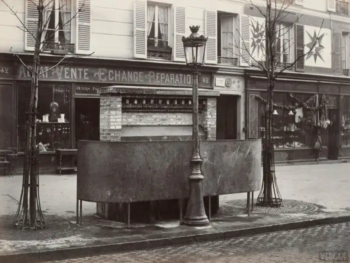 Очень странное фото, потому что человек выбрал сомнительное место для того что бы стоять. Неважно во Франции ли дело происходит ли ещё где-то, но там же должен был стоять специфический запах. Вряд ли в Париже в конце 19 века существовали освежители воздуха.