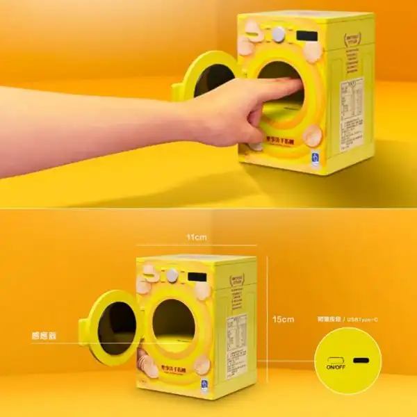 Вашему вниманию предоставляется стиральная машинка для ваших пальчиков! Это устройство поможет вам в пару секунд очистить запачканные пальчики от крошек после перекуса чипсами.