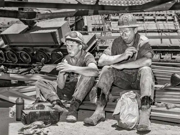 7. Рабочие во время перерыва. Плотина Шаста, Калифорния. Июнь 1942 год