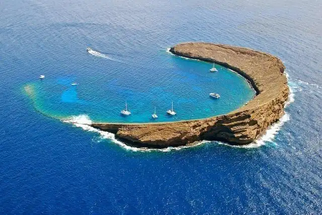 Молокини, частично затопленный вулканический кратер на Гавайях