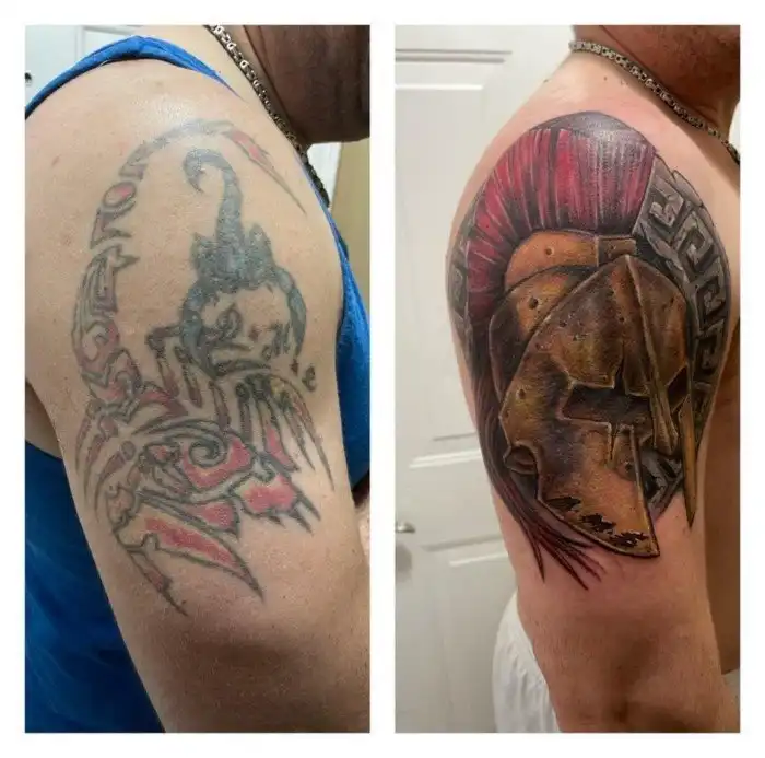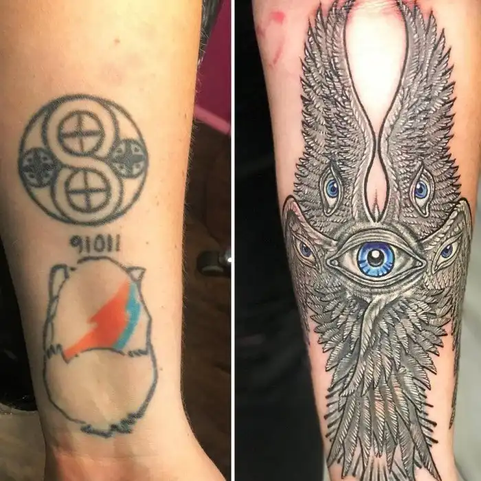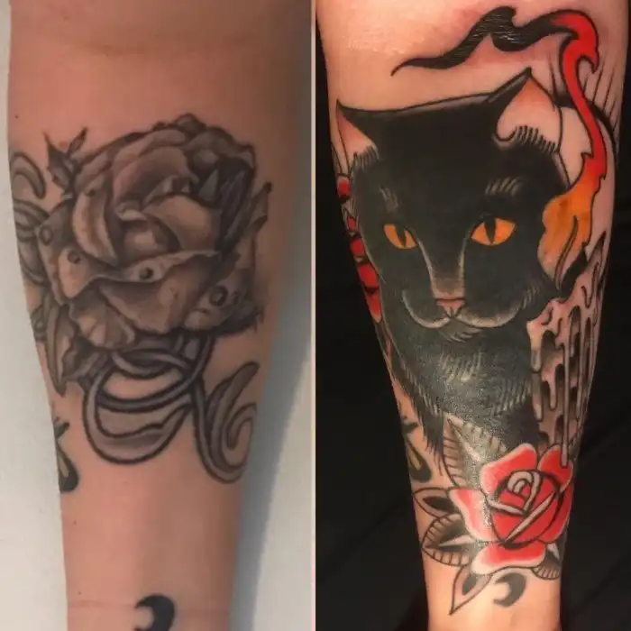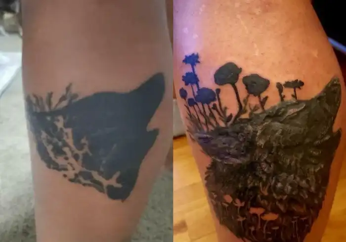 Вообще татуировщики не очень любят чужие работы доделывать, им проще сделать сразу свое