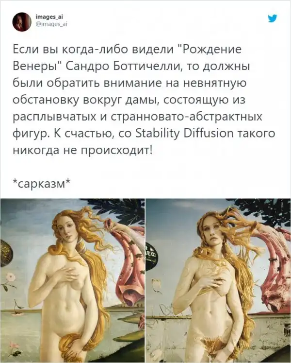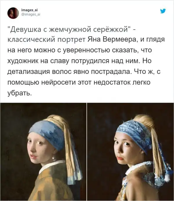 Нейросети с каждым днем становятся все умнее и популярнее. Сейчас каждый может побаловаться с этой "технологичной игрушкой". Так, например, художница под ником images_ai решила поэкспериментировать с нейросетью Stable Diffusion, чтобы слегка доработать классические картины. Результат получился весьма непредсказуемым, но интересным.