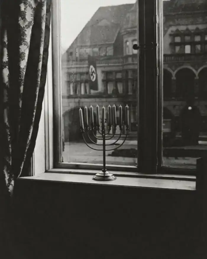 6. Еврейская ханукия (ханукальный светильник) стоит на окне назло нацистской свастике, 1931 год